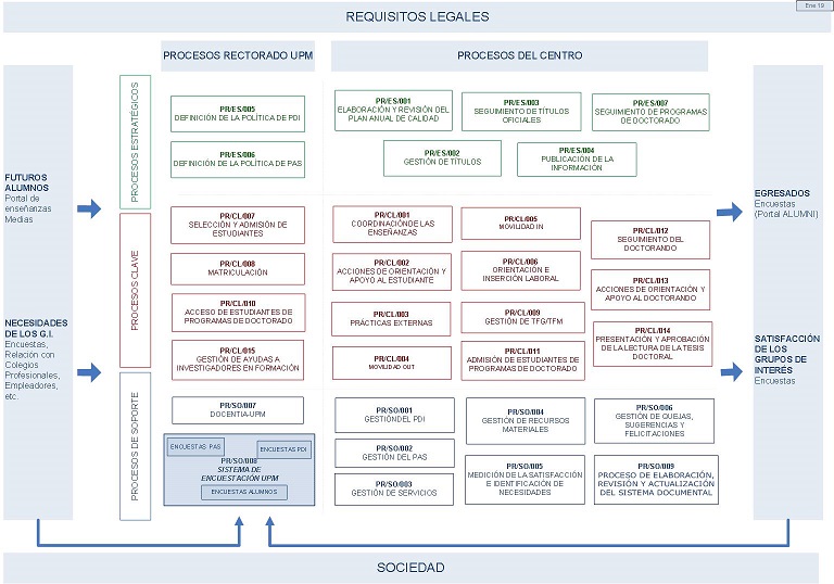 Procesos de soporte (prefijo PR/SO) son los que gestionan el Personal y los Servicios del centro, las encuestas y el buzón de Quejas, Sugerencias y Felicitaciones: